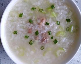 瘦肉和大米一块煮,快煮的时候加入适量的芹菜、油、盐,再焖个五分钟就可以起锅了,盛入碗中放点葱花,口味更加哦