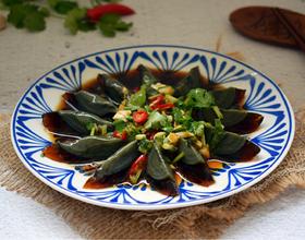 - 2. 皮蛋去壳洗净后用切蛋器切成6瓣