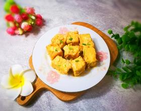 老豆腐放入盐水里烧开去除豆腥味,沾满面粉不会巴锅。