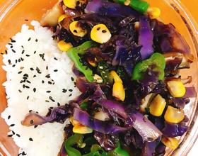 把菜放入已盛米饭的乐扣碗里,撒上熟芝麻
