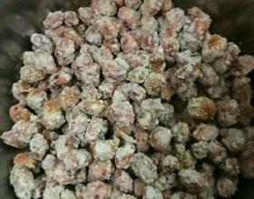 锅里加水放白糖煮出泡泡把花生米倒进去翻均匀