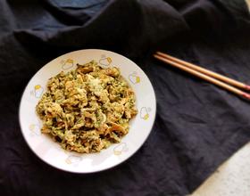 锅中放油,油热后倒入搅拌均匀的香椿鸡蛋