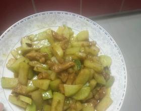 油热了把肥肉下锅微出油,再把瘦肉下锅。翻炒后盛出来。