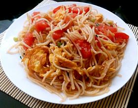 倒入已经烫好的粉干,生抽蚝油葱花。炒至均匀。