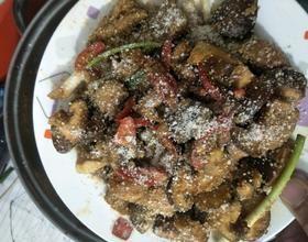 咸肉切块,葱姜蒜切合适的段块,辣椒切碎,香菇切块,倒入五香粉,老抽生抽,黄酒,豆瓣酱,放入锅内进行腌制!