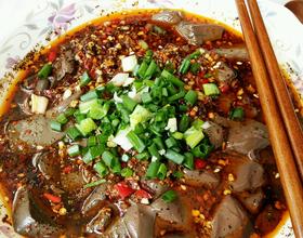 - 4. 把伴好的酸辣调料到在捞起的羊血上,拌匀,撒葱,ok。酸辣酸辣的好好吃哦,今天做了一小份,我在炒其他菜去了,然后就被我儿子就吃了一半了