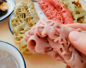 把三个碗分别放入相同等量的面粉,红曲粉,紫薯粉,抹茶粉分别加入