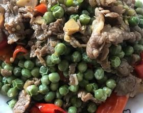 大火翻炒2-3分钟以后,放入豌豆,加少许蚝油、适量的盐,继续翻炒。