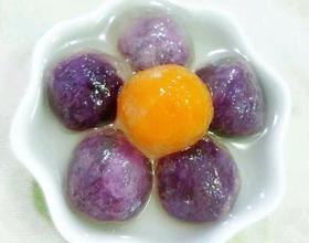 揉好的紫薯球,裹上西米粉,然后放清水中蘸湿,再裹上西米粉,这样重复3次