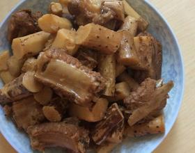 起锅熬油,待油烧热放入大茴,再倒入排骨翻炒均匀。放入适量的黄酱,酱油,葱姜翻炒均匀。