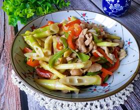 新鲜竹笋含有大量植物碱,焯水后可去除竹笋的苦涩味道。肉丝提前腌制,炒制出来口感鲜嫩无比!食用竹笋,能促进肠道蠕动,帮助消化,是理想的*食蔬。