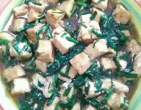 锅中放油把豆腐炸一下,如果豆腐很湿可以加一些干淀粉,炸出的豆腐金黄而且会很入味。
