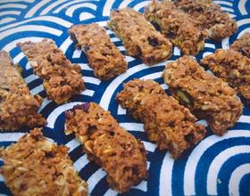 烤盘铺吸油纸,倒入混合好的燕麦糊,压紧压实