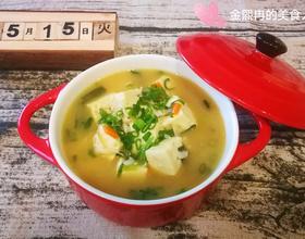1.生姜用来去虾皮的腥味,还是放了比较好。2.葱跟虾皮的香味一定要爆出香味,请小火操作小心糊锅。3.豆腐还是选择相对结实的北豆腐较好。4.这个量两人吃相对较少,可约量添加豆腐跟汤。祝友友们,健康开心。