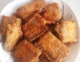 - 6. 待油温加热后,把裹好淀粉的带鱼一个一个摆在煎锅里,切记用小火慢慢煎熟,煎至两面金黄,出锅。