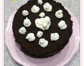 然后在用黄油拌匀的奥利奥底层上铺一层打发好的奶油~
