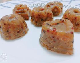 藜麦糖水一定要沸腾,不然马蹄粉会冲泡不开,有结块。装入模具,不需要抹油,马蹄粉粘性很好,很容易脱模。喜欢口味甜一点的,可以多放一点糖。