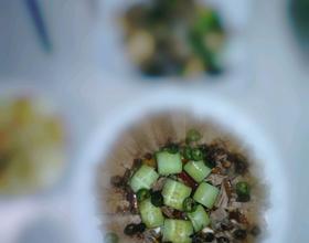第六部,如果觉得用油会腻,也可以直接将生抽,耗油,盐,鸡粉,放入碗中,再放入点香油,拌匀。我这个图片的是做好忘记拍照了,还好吃饭前照了个照片。