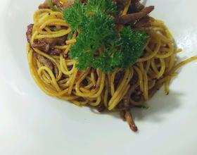 意面 煮的时间一定要把握好,待水烧开适量放点盐,和橄榄油一起煮 下入意面一定要散开放入 不要一把撒在锅里 然后时不是的翻动一下,以免粘在一起了。 我是为了颜色好看一点 所以我呢 加了一点姜黄粉煮的 颜色要黄一点。一般煮10~12分钟左右,煮到10分钟 也可以用手指掐一下看看里面带一点点白色的心子 就差不多 有8分熟了。煮好之后捞起来用色拉油拌一下以免意面会粘在一起。等待备用。