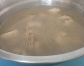 捞出起锅倒焯好的鸭子继续熬汤,大火烧开。倒出鸭汤备用,鸭肉起锅少油加姜片煸炒几分钟,加香醋继续炒个两分钟