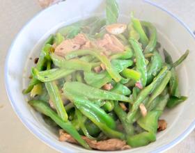 放入辣椒丝翻炒加适量盐调味,在加适量水翻炒三分钟,出锅放入少许味精