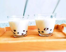 把煮好的奶茶倒入杯中,再加几勺珍珠