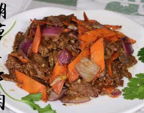 - 8. 放入洋葱和胡萝卜,翻炒一分钟左右,放入一勺半盐