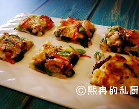 1.海鲜的种类并不是固定的,贝壳类的海鲜肉、章鱼之类有嚼劲,且易熟的都可以。2.海鲜用盐抓洗更干净。抓洗过程中已入底味,不用另加盐。3.小葱用干面粉帖服表面,是为了避免煎制过程中出水,脱离面糊。4.青红椒按各自口味添加,不喜欢辣的朋友跟小盆友,可以不放。为了视觉效果,可撒些葱叶、胡萝卜、甜椒这样,颜色鲜艳的蔬菜代替哟。祝哈友们,用餐愉快。