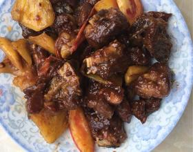 油,排骨,菠萝,西红柿放下去炒,然后放糖