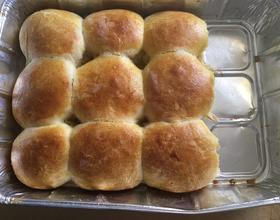 烤盘先刷黄油,面团揉成小团,放入烤盘,醒到2倍,表面刷鸡蛋液,300F,我的烤箱温度是华氏,烤13分右,最好办法,表面金黄就可以