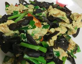 - 7. 油热把刚才切好的木耳和小葱段 辣椒倒进去炒 翻炒2分钟左右 可以加一点点水 然后倒入刚才炒好的鸡蛋 适量加一点鸡精 盐 或者自己喜欢的调料 再翻炒2分钟 出锅