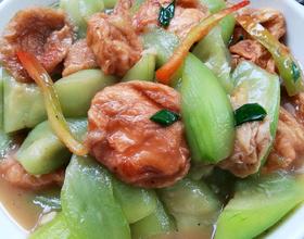 锅中倒油烧至七成热爆香蒜碎,倒入丝瓜翻炒