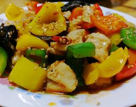 - 7. 放入鸡丁倒入辣椒片和木耳翻炒均匀,淋一点水淀粉,开大火收一下汤汁,在淋入明油和辣椒油是使鸡丁色泽红光发亮。