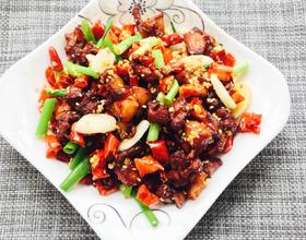 倒入鸡块翻炒均匀,加点味精,出锅前撒一把香葱。
