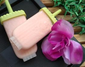 用勺子将搅拌好的酸奶西瓜汁装进磨具内,每个磨具放几粒提子e。