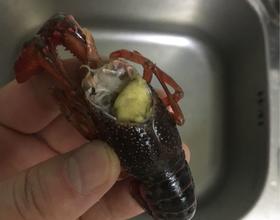 将虾头中的黑色杂质去掉,小龙虾就处理干净了。
