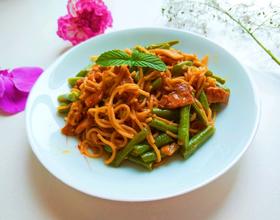 炒好的豆角一定用开水,根据豆角量放入,五花肉煸干才好吃,不会油腻。