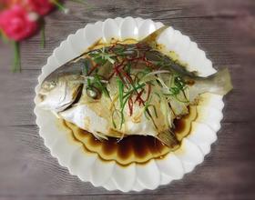 - 6. 鱼蒸好后取出,捡去葱和姜,淋上蒸鱼豉油。