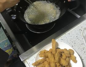 腌好后鸡蛋调散,裹鸡蛋,再裹面包糠