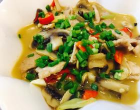 倒入蘑菇翻炒 放点生抽 炒二分钟加盐 加入水慢炖