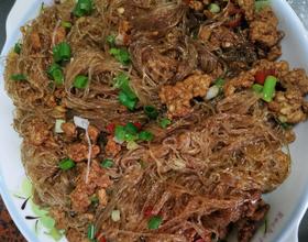 准备好,粉丝,肉末,葱段,小米辣,蒜