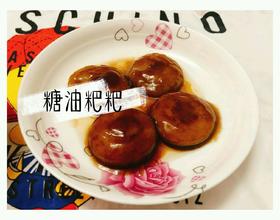油粑粑煎至于两面金黄,红糖水倒入油锅