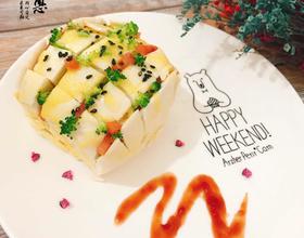 火腿肠切细条,西兰花洗净掰小小朵,鸡蛋打开只取蛋黄。