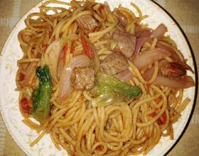 番茄炒出汁,放入洋葱,生菜,意面,盐,黑胡椒,还有炒好的牛肉搅拌均匀即可
