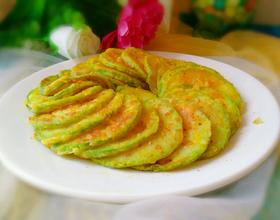 取一片,西葫芦,沾满蛋液,再沾满面粉