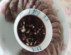 待肘花卷凉透,变硬。取出拆开保鲜膜切片摆盘,沾酱汁食用。