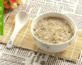 高压锅中倒入绿豆,洗净的糙米、大米。