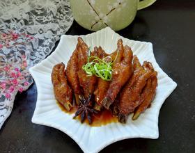 - 6. 锅内放油烧热蒜末煸炒香放入鸡爪,放入两个茴香和适量生抽