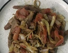 倒入炒好的牛柳,黑胡椒、甜辣酱翻炒均匀