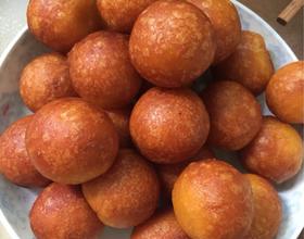 将蒸熟的红薯压成泥加入白糖,糯米粉